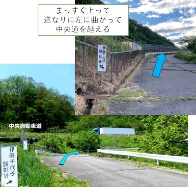 中央自動車道の陸橋を渡り切った所にある案内板を見て
