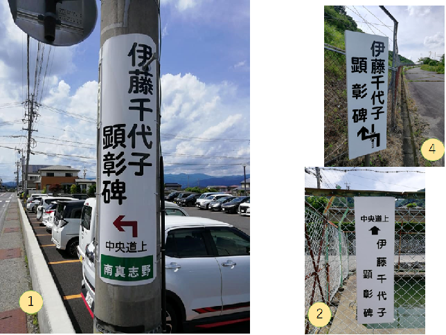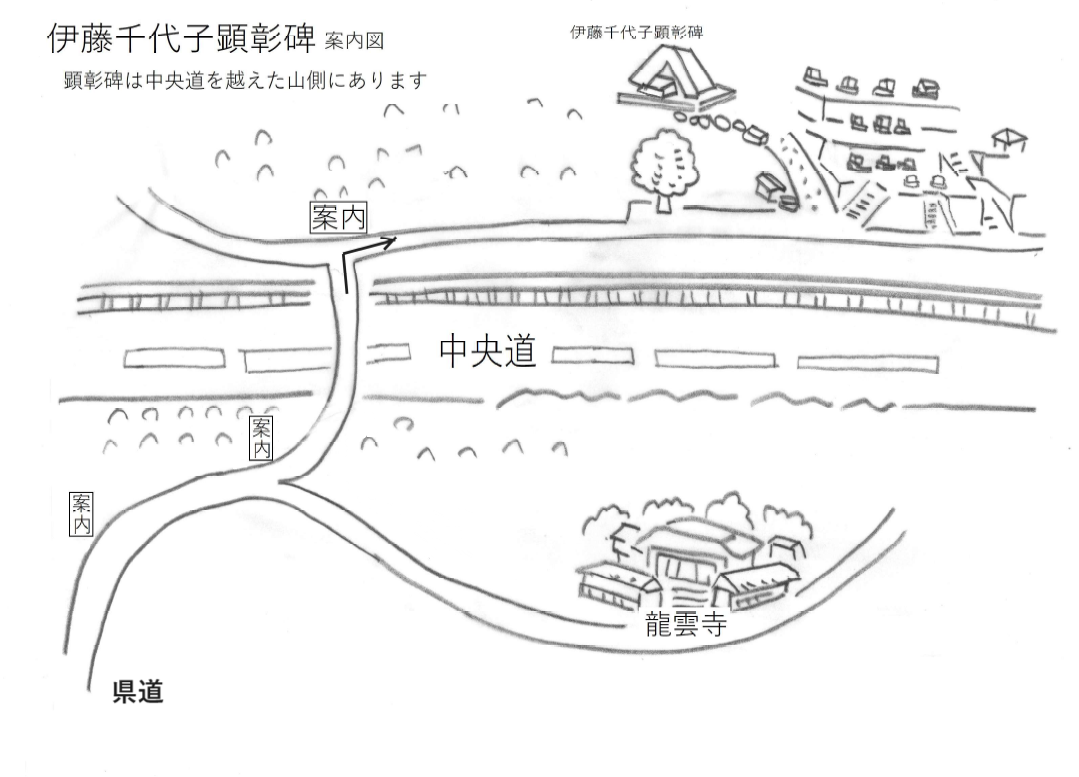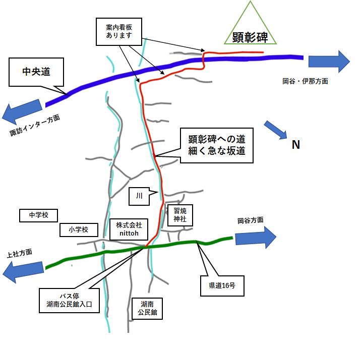 顕彰碑は地図には載っていません。上の地図などで事前に確認お願いします。